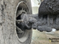Self-propelled concrete mixer is in working condition.