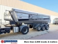 Fahrzeugstandort: Bovenden, Stahl-Aufbau, 3-Achsen, SAF-Achsen, luftgefedert, 1.Achse liftbar, Heben+Senken, ABS (Antiblockiersystem), Rollplane, Laufsteg, Klappe, U-Schutz, Stützen Aufbau: Stahlmulde ca. 25m³ mit Podest und Rollplane SAF-Achsen Typ B9-22S, Scheibenbremsen, 1.te Achse liftbar, Rückwand aus 5mm Stahl VS 100 außenliegend, Stirnwand aus 5mm Stahl VS 100, Seitenwände aus 4mm Stahl. Aufsattelhöhe ca. 1,30m bis 1,35m! ZUBEHÖRANGABEN OHNE GEWÄHR, Änderungen, Zwischenverkauf und Irrtümer vorbehalten! - .