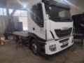 DESCRIZIONE – Autocarro in buone condizioni generali, in allestimento con pianale con rampe di carico nuovo metri 7,80, 3 assi, 6x2, cambio automatico, Euro 6, sospensioni full pneumatiche, clima