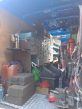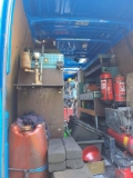Työpöytä, varaosalaatikot, hyllyt, ruuvipenkki, kompura
