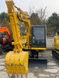 The Komatsu PC60-8 is a reliable 6-ton class hydraulic excavator ideal for urban construction, landscaping, small earthmoving, and utility projects. Powered by a Komatsu 4D102E engine with a rated power of 40.7kW (55PS), it delivers stable performance and fuel efficiency, paired with a high-response hydraulic system (max main pump flow 172L/min, working pressure 24.5MPa) for smooth and precise operation. With an operating weight of 6180kg, a bucket capacity ranging from 0.25 to 0.37m³, and a maximum arm digging force of 4060kgf, it balances compactness and strong digging capability. The machine features a reinforced undercarriage for durability, a ROPS/FOPS-certified ergonomic cab for operator comfort and safety, and a user-friendly layout for easy daily maintenance, making it a cost-effective and versatile choice for small to medium-scale construction tasks.