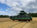 Conventional combine, 6 Straw-walkers with open bottom and 4 steps. Feeder channel with front finger roller, 3 chains and alternated bars, hydraulic reverser. Threshing drum width 1520 mm, diameter 600 mm, 8 bars, variable speed from 420 to 1250 rpm. Turbo Separator with 590 mm diameter. Adjustment in 5 positions from 25 to 65 mm. Speed 775 or 410 rpm. Concave with 15 bars, 121° wrapping angle; front and rear independent adjustment, deawing plates with external control. Segmented preparation pan with double cascade pre-sieve. High performance cross-flow turbine fan. DGR system, double grain return elevator with left and right rotothreshers, discharge onto the preparation pan.