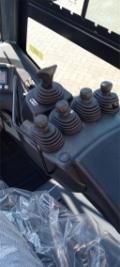 Stahlkabine schwingend gelagert, akustisches Rückfahrsignal, Minihebel, Fahrtrichtungsumschalter in der Armlehne, Sonnenrollo, blaues Warnlicht nach hinten gerichtet, Verriegelung der 4. Hydraulikfunktion, I-Site, inkl. Schocksensor, Pin-Code, Sonderausstattung: Multifunktionsdisplay