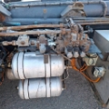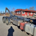 Koukku vaihtolava laite Hyvalift 22 &2 SZ laitepituus 6,10 m 2 kpl ruostumaton teräs työkalulaatikoita molemmin puolin voiman otto vaihteiston perässä suoraan hydrauliikka pumppu moottorin takana ulos otto vilkkumajakka katolla ohjaavateli ilmajousitus edessä ja takana