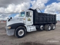 Located in Lane 62 Spot 11, Detroit Diesel Series 60 6 Cylinder Diesel Engine, Engine Brake, Eaton Fuller 10-Speed Manual Transmission, 12000 lb Front Axle, 40000 lb Rears, 52000 lb GVWR, Air Ride Cab, Aluminum Wheels, 425/65R22.5 Front Tires, 11R22.5 Rear Tires, Hendrickson Rubber over Walking Beam Suspension, 217 in Wheelbase, PTO, 16 ft Long x 4 ft High Steel Body, Electric Roll Tarp, Tailgate Chute
