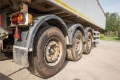 Plank sided aluminium body with automatic tailgate and Dawbarn side to side sheeting system. Tipping powered by an Edbro front-mounted ram. Running on air suspension with Mercedes Benz disc brake axles and Knorr Bremse braking system. Fitted with swing up rear underrun bumper and JOST landing legs.