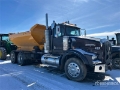 Cat 3406E 6 Cylinder Diesel 365 hp Engine, Positive Air Shutoff, 7446 Engine hrs, Engine Brake, Eaton Fuller RTLO-18718B 18-Speed Manual Transmission, Double Differential Locks, Meritor RT-46-160P Drive Axles, 4.30:1 Axle Ratio, 27243 kg GVWR, Air Ride Cab, Aluminum Wheels, 11R24.5, Chalmers Rubber over Walking Beam Suspension, 229 in Wheelbase, PTO, Tenco TCB 1210 Steel Spreader, 1 Spinners, In-Cab Controls, Tenco 14 ft Long x 5 ft 2 in High Steel Body, Pintle Hitch, Complete-Dispersal-for-J-Alexander-Trucking-Ltd