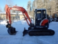 CE hyväksytty hyväkuntoinen ja siisti Kubotan viisitonninen kaivinkone. Engcon propo-ohjattu rototiltti lisähydrauliikalla esim. kouralle, hydraulinen kauhanlukitus S-40, luiska, kuokka ja kaapelikauha, uudet telat, lohkolämmitin, Xenonvalot.