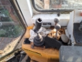 Scratched window from wipers, Leaking hydraulic motor on the right side in the reducer, Significant wear on the machine, Some moving parts may be seized or rusty, Damaged front part from stones, Operation wear and damages, Scratches on the body, Without battery