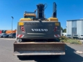 Volvo EW160D mobile excavator, year of manufacture: 2014, operating hours: 8.961h, adjustable boom, forestry protection grid, HS21 hydraulic quick coupler, 1x backhoe bucket 1.200 mm, heating, hammer and grapple line, dozer blade, 30 km/h, engine: Volvo D6H [115 kW/156 hp], weight: 20.500 kg, good condition, ready for immediate use.