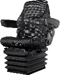 Penkissä mm Comfort käsinojat. Poistumiskääntö 20 astetta. Pituusvaakajousitus. Istuintyynyn leveys 510 mm. 5 asentoinen iskunvaimennin. istuinkorkeus 270-370 mm.