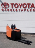 Plattform manuell hochklappbar, feste Seitenschutzwände mit schmalem Deichselgriff, kurzer Deichselarm, Servolenkung, 12,5 km/h Version, Gabelrollen Tandem, Stützrad Einfach- Premium, Antriebsrad - Premium, PIN-Code