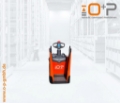 Plattform manuell hochklappbar, feste Seitenschutzwände mit schmalem Deichselgriff, Servolenkung, 12,5 km/h Version, Gabelrollen Einfach, Stützrad Einfach- Premium, Antriebsrad - Premium, PIN-Code