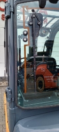 Endkundenbemerkung: integrierter Seitenschieber, Arbeitsscheinwerfer vorne und hinten, blaues Warnlicht nach hinten gerichtet, Blitzleuchte auf dem Fahrerschutzdach, akustisches Rückfahrsignal, SE-Reifen abriebfrei, Panoramaspiegel, Minihebel, Fahrtrichtungsumschalter in der Armlehne, Hupe in der Armlehne, Grammer MSG 65, breites Bremspedal, Vollkabine mit Heizung, Wischer vorne und hinten, Klemmbrett, Schlüsselschalter, CE-Zertifikat, Batteriekapazität 72%, Sonderausstattung: SE-Bereifung abriebfrei, Minihebel, Fahrtrichtungsumschalter in der Armlehne, blaues Warnlicht nach hinten, akustisches Rückfahrsignal, Grammer-Sitz MSG 65, Arbeitsscheinwerfer vorne und hinten, Panoramaspiegel, Hupe in der Armlehne, Klemmbrett, Schlüsselschalter, SpecialEquipment: 3. Ventil, 4. Ventil, Arbeitsscheinwerfer hinten, Arbeitsscheinwerfer vorn, Dachabdeckung, Heizung, Vollkabine, CE Zertifikat, Nicht kreidend, Innenspiegel, Rundumleuchte, Scheibenwischer, Einpedal, OtherAttachments: Sideshift