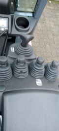 Endkundenbemerkung: integrierter Seitenschieber, Multifunktionsdisplay Deluxe: -Anzeige der Mastneigung, Anzeige des Lastgewichts, Zuverlässigkeit+ Paket Hubmastzylinder vollständig mit Öl befüllt, stoßfreies Absenken der Gabeln, LED-Rückkombileuchte inkl. Rücklicht, Bremslicht, Blinker, Rückfahrscheinwerfer, LED-Frontkombileuchte inkl. Arbeitsscheinwerfer, inkl. Standlicht und Blinker), Blaues LED Warnlicht nach hinten gerichtet, 4 Ventile mit SF für die 3. und 4. Hydraulikfunktion, abriebfreie SE-Bereifung, automatische Parkbremse mit Rampenstopfunktion, Ölbad Lamellenbremse, Minihebel, Fahrtrichtungsumschalter in der Armlehne,